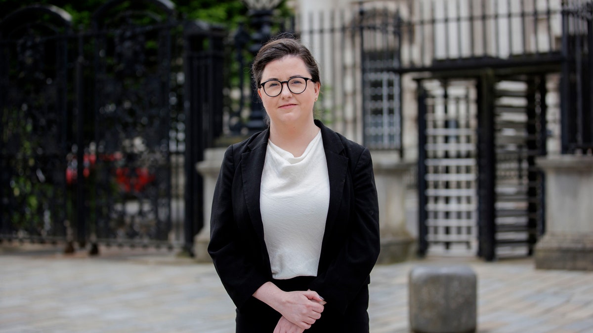 Sinead Marmion, asylum and immigration solicitor at Phoenix Law, poses outside Belfast High Court in Belfast, Monday May 13, 2024. The United Kingdom’s law to deport asylum-seekers shouldn’t apply in Northern Ireland because parts of it violate human rights protections, a Belfast judge ruled Monday. While the prime minister’s office said the ruling wouldn’t derail or delay Rwanda deportations it expects to begin in July, Sinead Marmion, a lawyer whose client prevailed in bringing the case said the law wouldn’t apply in Northern Ireland. (Liam McBurney/PA via AP)