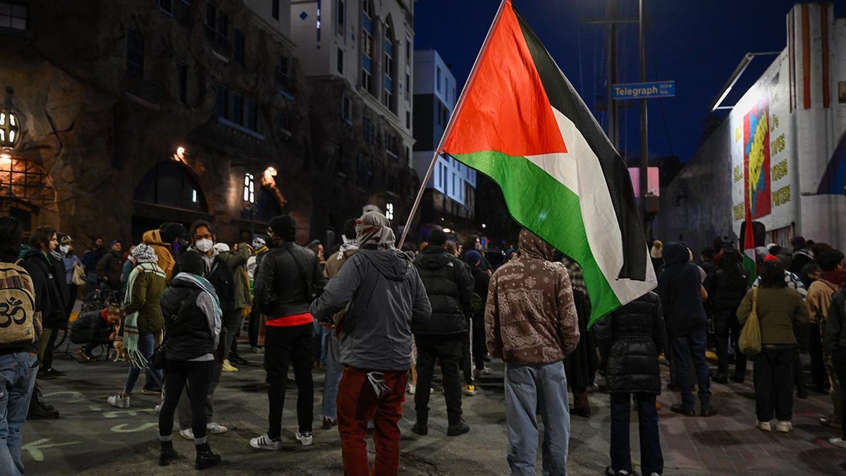 Pro-Palestinian protesters at People’s Park in Berkeley in January, not far from campus. (Tayfun Coskun/Anadolu via Getty Images)