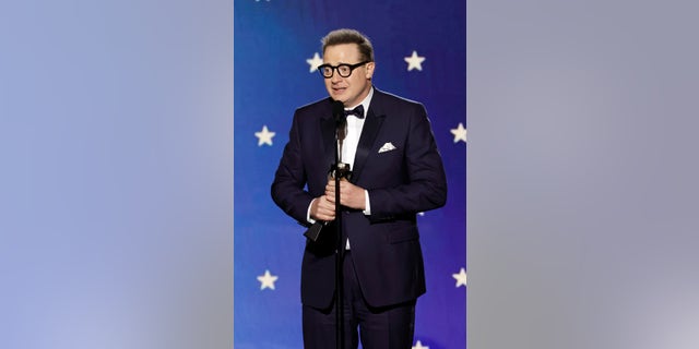"The Whale" star Brendan Fraser delivered an emotional acceptance speech Sunday at the Critics Choice Awards.