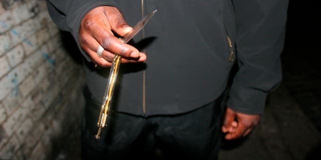 Close-up of a youth holding a butterfly knife. (Photo by Faye De Gannes/PYMCA/Avalon/Getty Image)
