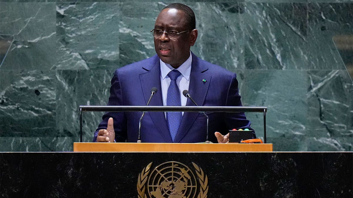 Macky Sall, President of Senegal, addresses the 78th session of the United Nations General Assembly, Tuesday, Sept. 19, 2023 at U.N. headquarters. (AP Photo/Frank Franklin II)