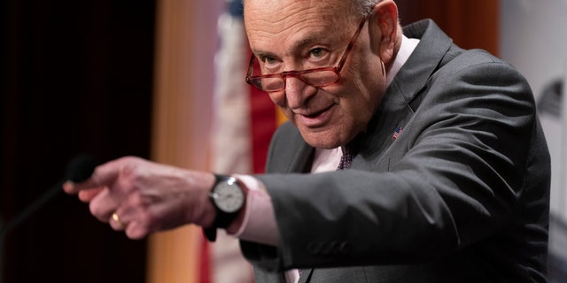 Senate Majority Leader Chuck Schumer of N.Y., speaks during a news conference with with House Minority Leader Hakeem Jeffries, of N.Y., on Capitol Hill, Wednesday, Jan. 25, 2023, in Washington. (AP Photo/Manuel Balce Ceneta)