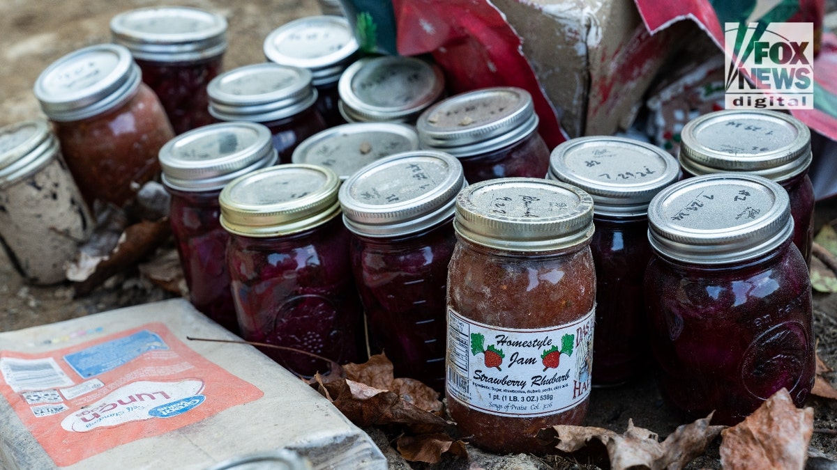 Jesse and Mekenzie Craig salvaged jars of jam that Jesse’s mother made. (Adam Eugene Willis for Fox News Digital)