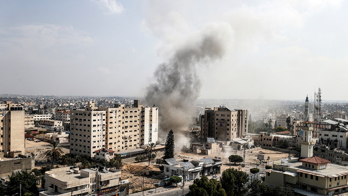 Smoke rises near the al-Wafa hospital from Israeli airstrike in Gaza City on Oct. 24, 2023. (Ali Jadallah/Anadolu via Getty Images)