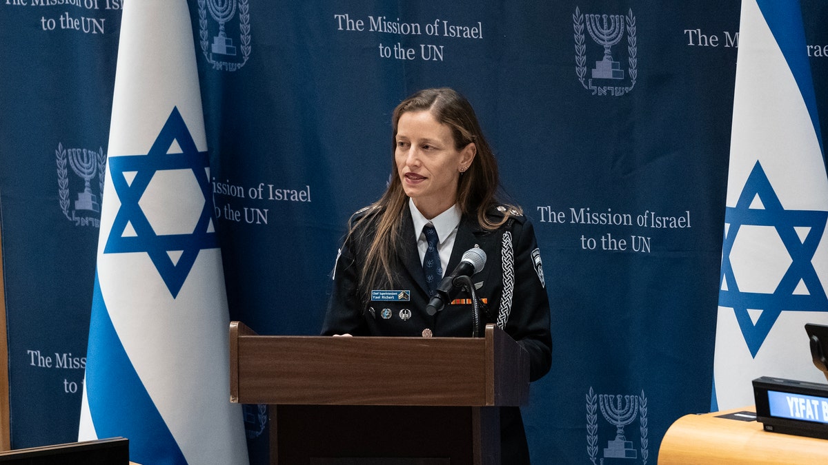 Yael Richert speaks during an event to address sexual violence during Hamas’ terror attack on Oct. 7, held at U.N. headquarters. During the event, speakers described their personal experiences seeing women violated and condemned women’s advocacy groups for their silence. (Lev Radin/Pacific Press/LightRocket via Getty Images)