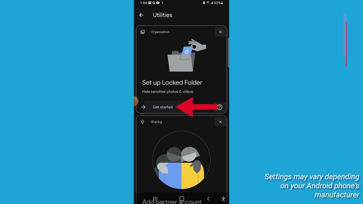 - From there, tap Get started, and use your phone’s authentication method to access the locked folder