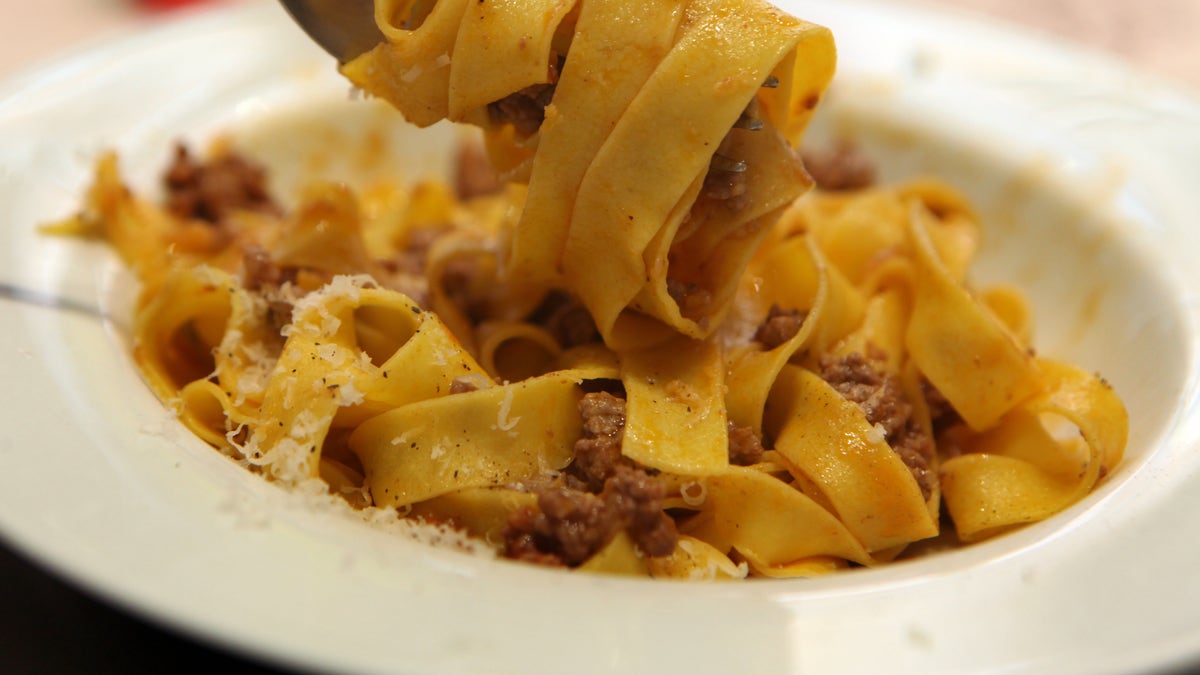Hand-made fettuccine is served with Bologna’s iconic ragù meat sauce after a cooking lesson in Bologna, Italy. (David Silverman/Getty Images)