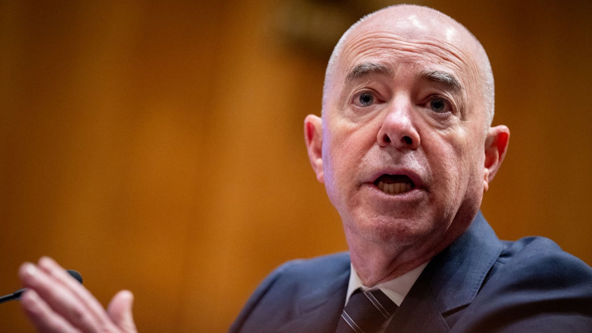 WASHINGTON, DC – APRIL 18: U.S. Homeland Security Secretary Alejandro Mayorkas speaks during a Senate Homeland Security and Governmental Affairs committee hearing on the departments budget request on Capitol Hill on April 18, 2024 in Washington, DC. ((Photo by Andrew Harnik/Getty Images))