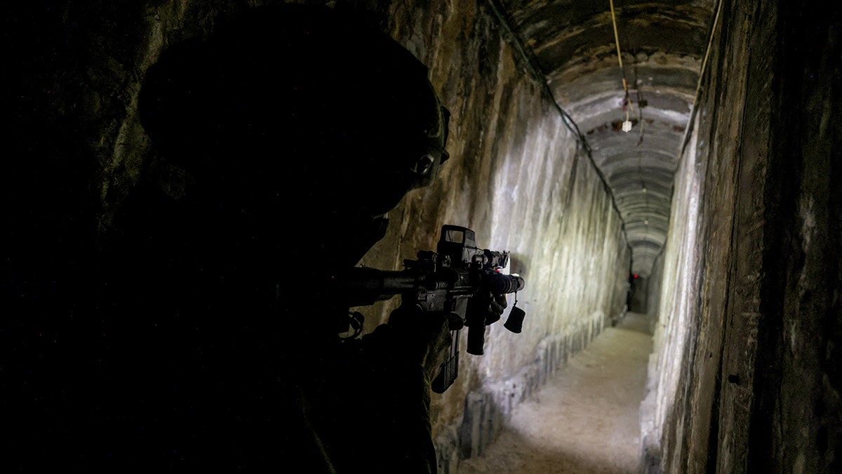 An Israeli soldier secures a tunnel underneath Al Shifa Hospital in Gaza City, amid the ongoing ground operation of the Israeli army against Palestinian Islamist group Hamas, in the northern Gaza Strip, November 22, 2023. (REUTERS/Ronen Zvulun)