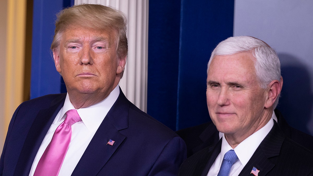 President Trump looks on after a news conference with Vice President Mike Pence in the Brady Press Briefing Room at the White House in Washington, D.C., on Feb. 26, 2020. (Tasos Katopodis/Getty Images)