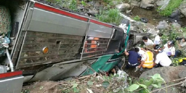 The bus tumbled down a ravine and crashed into multiple bee hives. Six people died from their injuries and another 14 were hospitalized. (Jam Press)