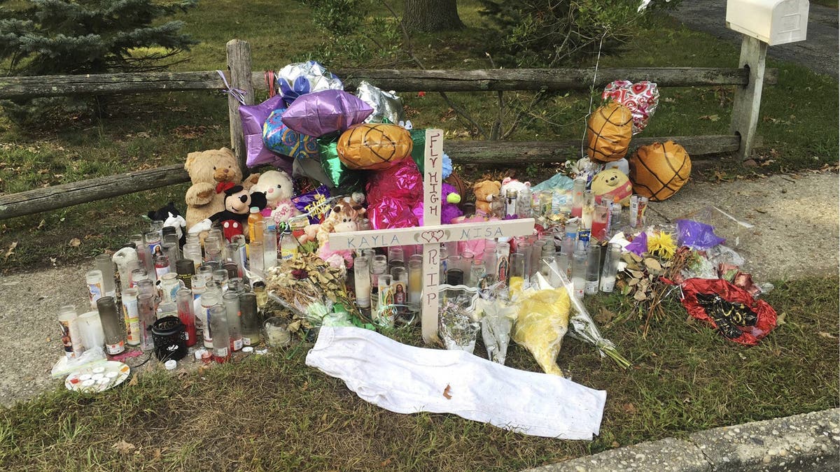 A memorial to best friends Nisa Mickens and Kayla Cuevas in Brentwood, New York, Sept. 27, 2016, near the spot where their bodies were found. (AP Photo/Claudia Torrens, File)