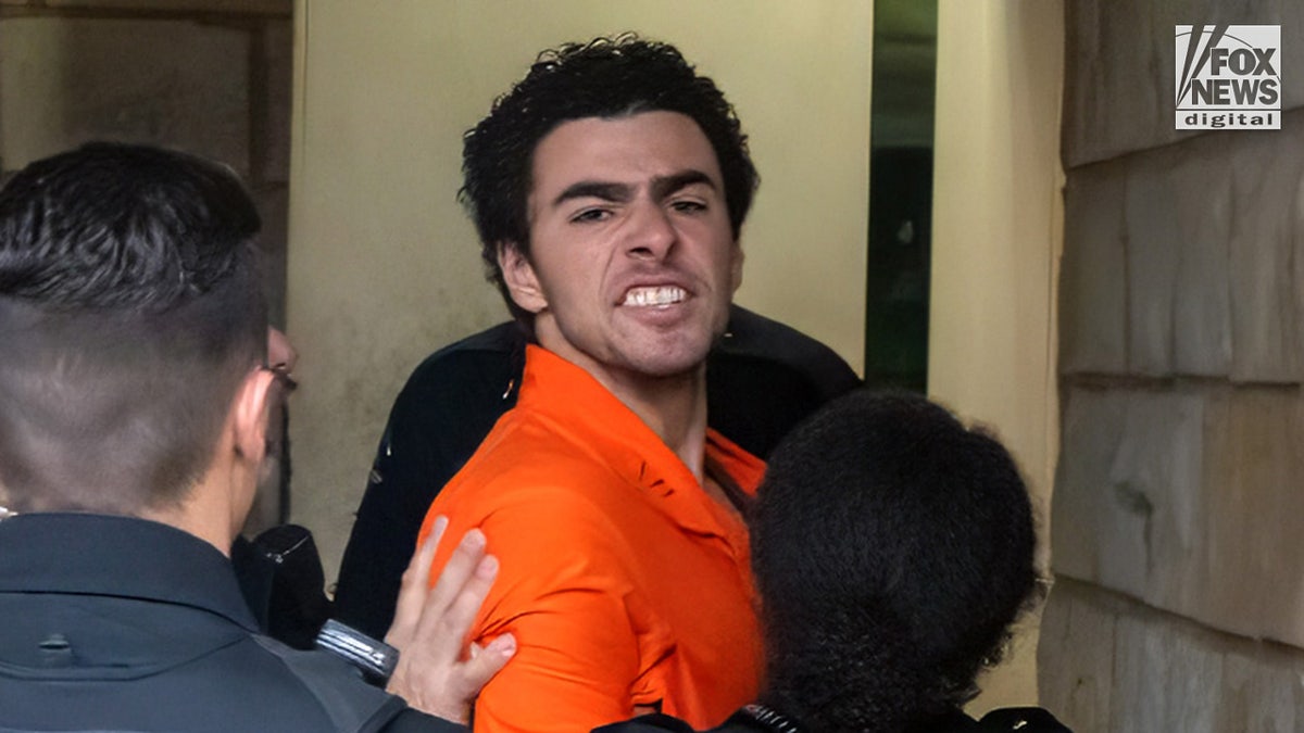 Luigi Mangione shouts while officers restrain him as he arrives for his extradition hearing at the Blair County Courthouse in Hollidaysburg, Pa., Dec. 10, 2024. (David Dee Delgado for Fox News Digital)