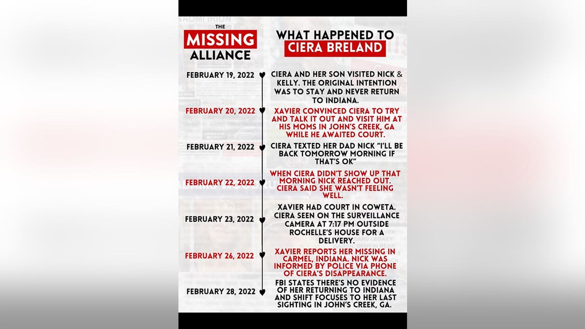 Graphic of a timeline outlining Ciera Breland’s disappearance. (Courtesy: The Missing Alliance)