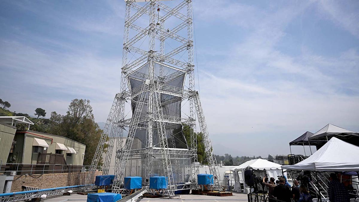 An Earth Entry System capsule is prepared for the Drop Tower Test demonstration for the Mars Sample Return mission at NASA’s Jet Propulsion Laboratory in Pasadena, Calif. (Patrick T. Fallon/AFP via Getty Images/File)