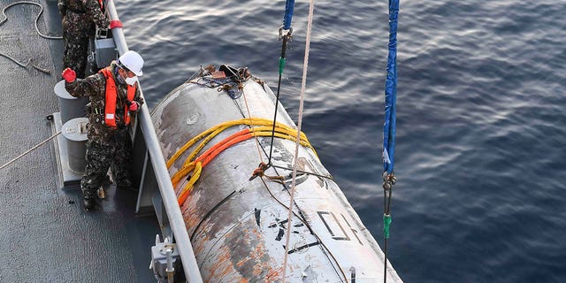 An object salvaged by South Korea’s military may have been part of a North Korean space-launch vehicle that crashed into the sea following a launch failure in West Sea, South Korea, on June 15, 2023. (South Korea Defense Ministry via AP, File)