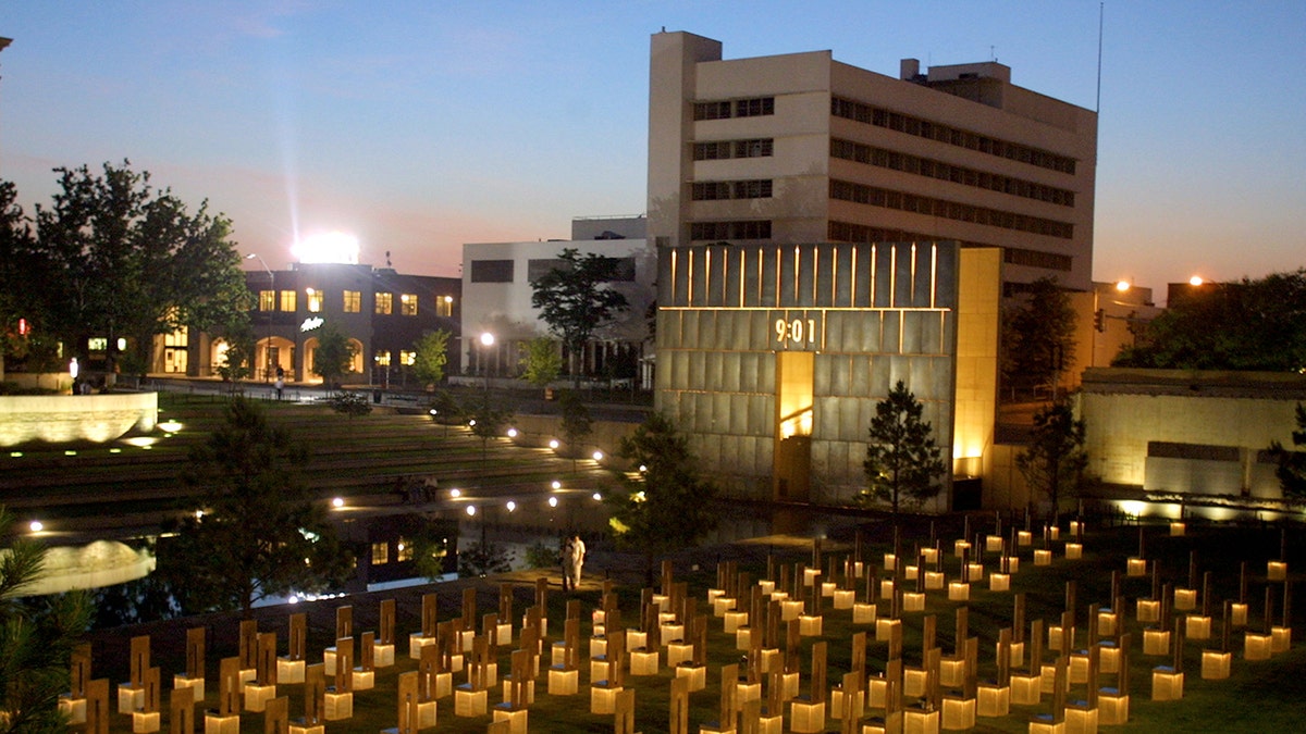 The Oklahoma National Memorial on the day of Timothy McVeigh’s execution June 11, 2001, in Oklahoma City, Okla. (Joe Raedle/Getty Images)