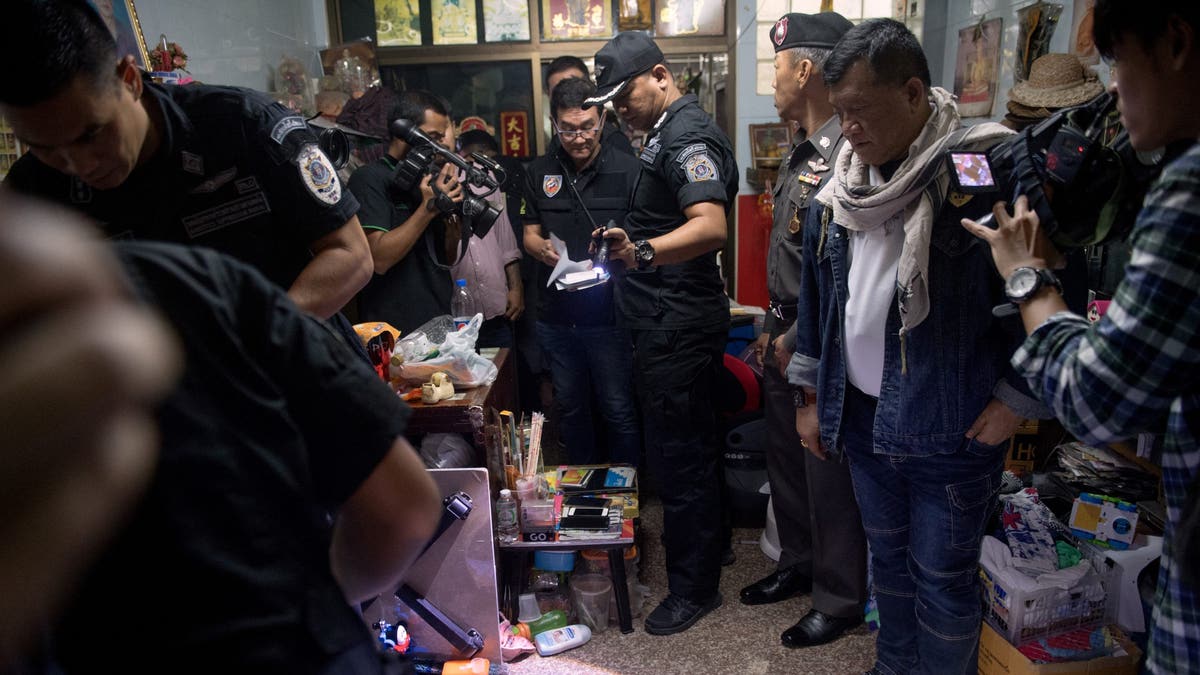 A Thai SWAT team, working with Thailand’s Narcotics Suppression Board, seized guns at a property in the Chinatown neighborhood of Bangkok on Jan. 17, 2018. (Roberto Schmidt/AFP via Getty Images)