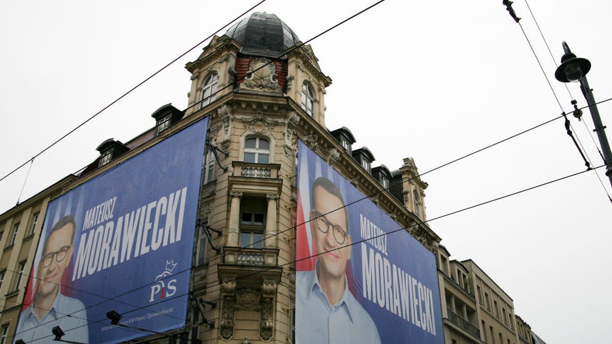 Campaign poster of Mateusz Morawiecki in the city where he runs from the first place on the electoral list of Law and Justice on September 23, 2023, in Katowice, Poland. ((Photo by Klaudia Radecka/NurPhoto via Getty Images))