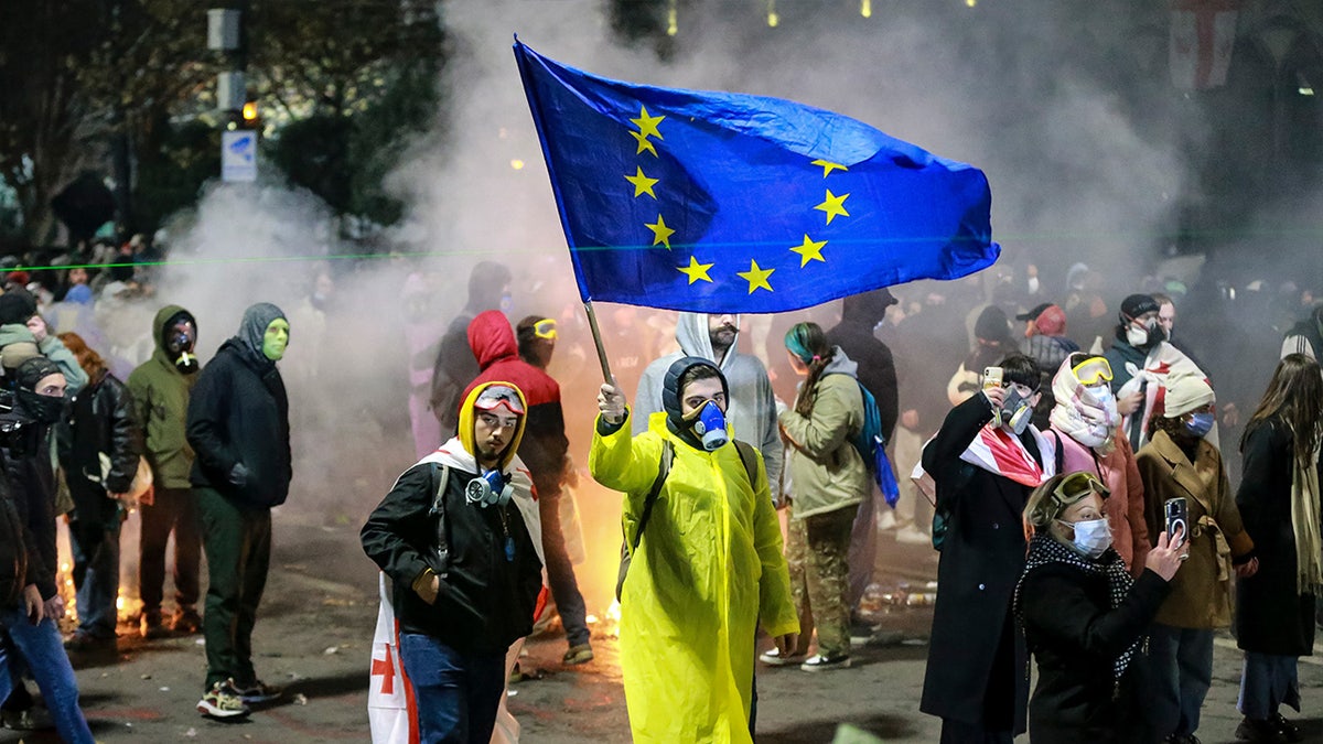 Protests erupt in Georgia after pro-Putin Dream Party leader stalls talks to join the EU over claims of foreign interference in country. (Credit: AP)