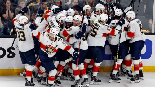 After a couple of scoring chances in the overtime period for both teams, Panthers center Carter Verhaeghe scored to eliminate the Bruins from the playoffs.