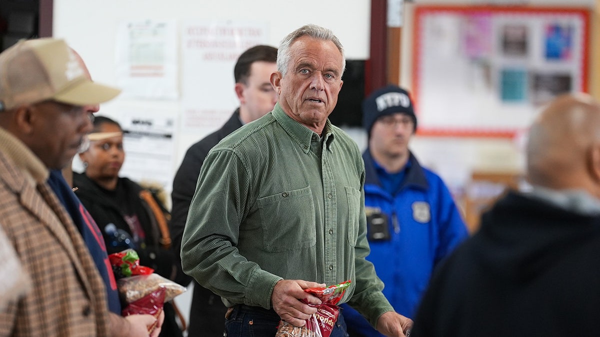 Robert F. Kennedy, Jr. visits the First Baptist Church Food Pantry on Feb. 17, 2024 in New York City. His campaign pays for security protection. (John Nacion/Getty Images)