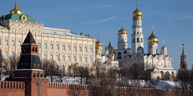 The Grand Kremlin palace, left, and the Cathedral of the Annunciation in Moscow, Russia, on Tuesday, Feb. 15, 2022. Russia announced the start of a pullback of some forces after drills that raised U.S. and European alarm about a possible military assault on Ukraine.
