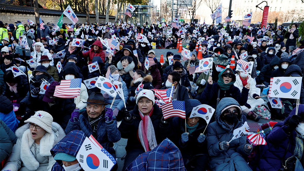 Protesters from conservative groups attend a rally supporting South Korean President Yoon Suk Yeol and denouncing opposition party’s politicians after the president’s surprise declaration of martial law last night, which was reversed hours later in Seoul, South Korea, on Dec. 4, 2024. (REUTERS/Kim Kyung-Hoon)