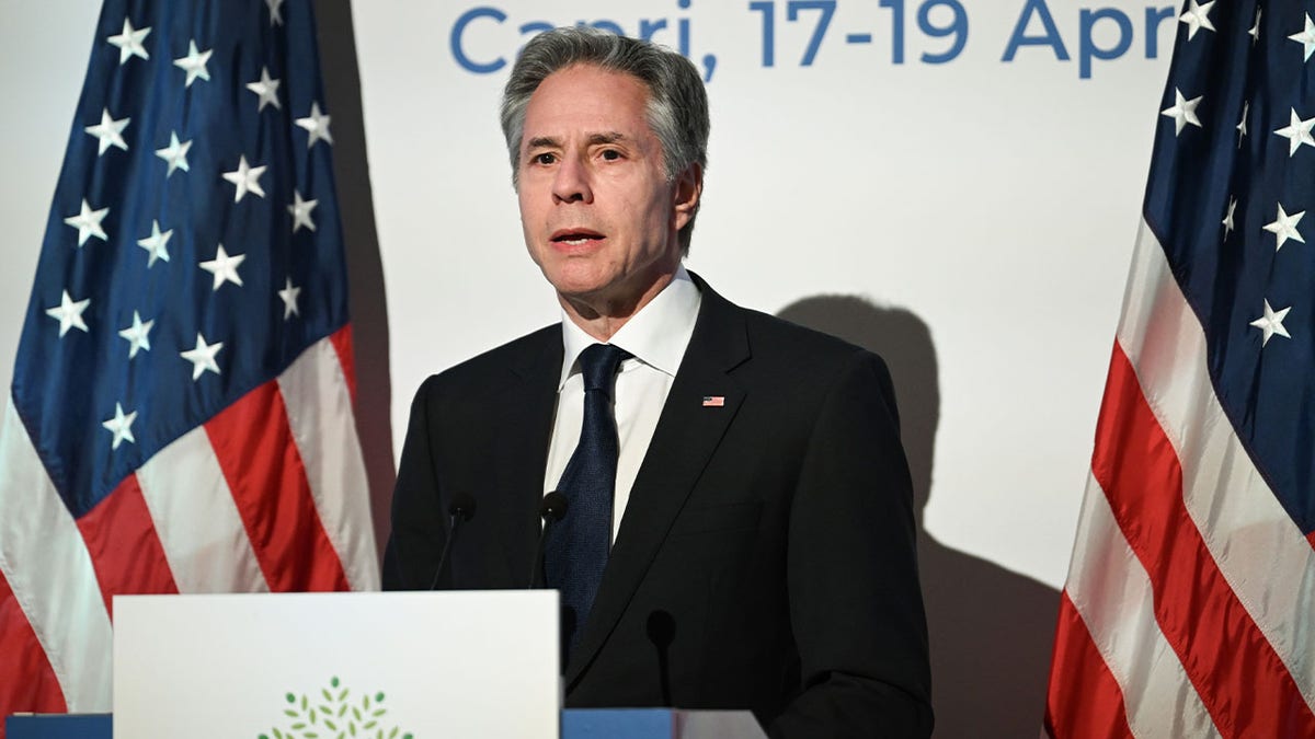 Antony Blinken, US Secretary of State, speaks at a press conference at the G7 foreign ministers’ meeting. (Britta Pedersen/picture alliance via Getty Images)