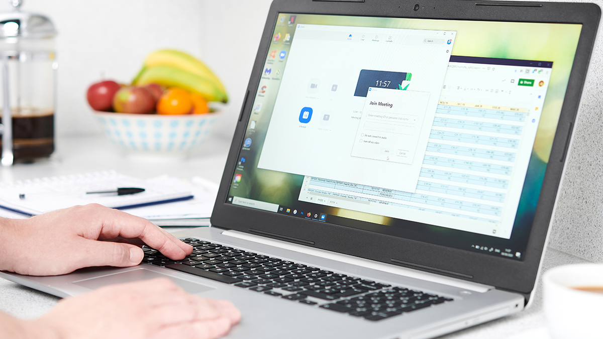 Detail of a home office setup on a kitchen worktop, including a laptop computer with Zoom video conferencing software, taken on Sept. 9, 2020. (Photo by Phil Barker/Future Publishing via Getty Images)