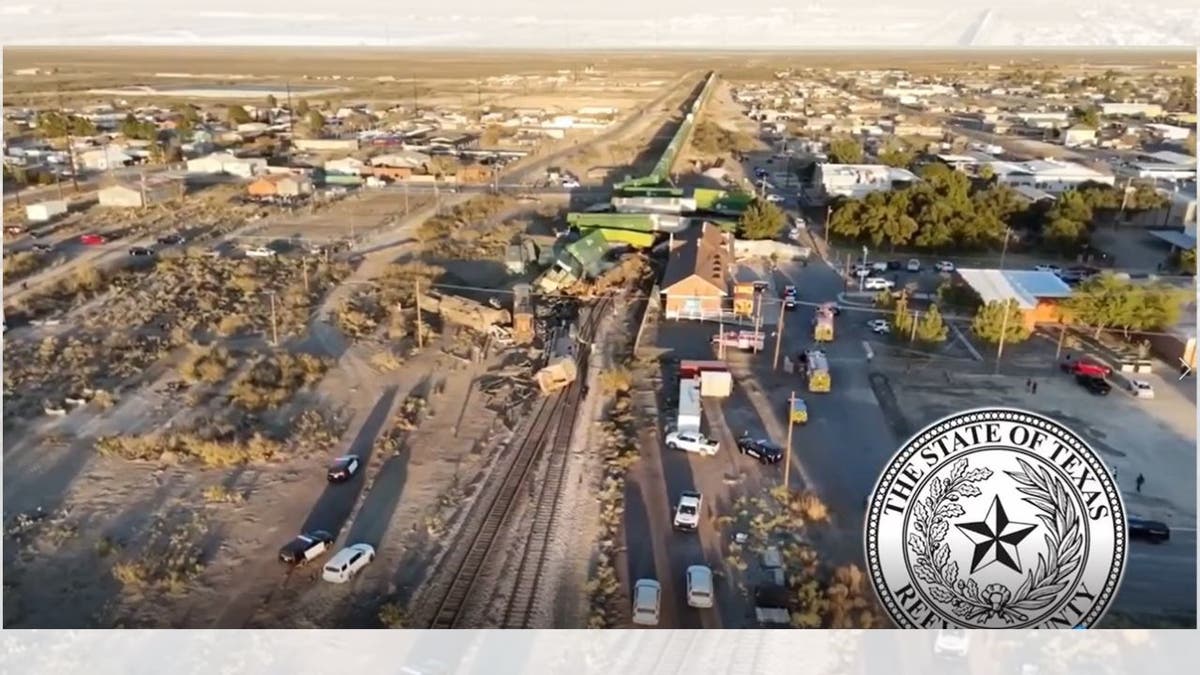 A train derailment in Pecos, Texas has left one person dead and four others injured. (Jesus M Quinones via Storyful; Irma Lozano La Morena via Storyful; Reeves County)