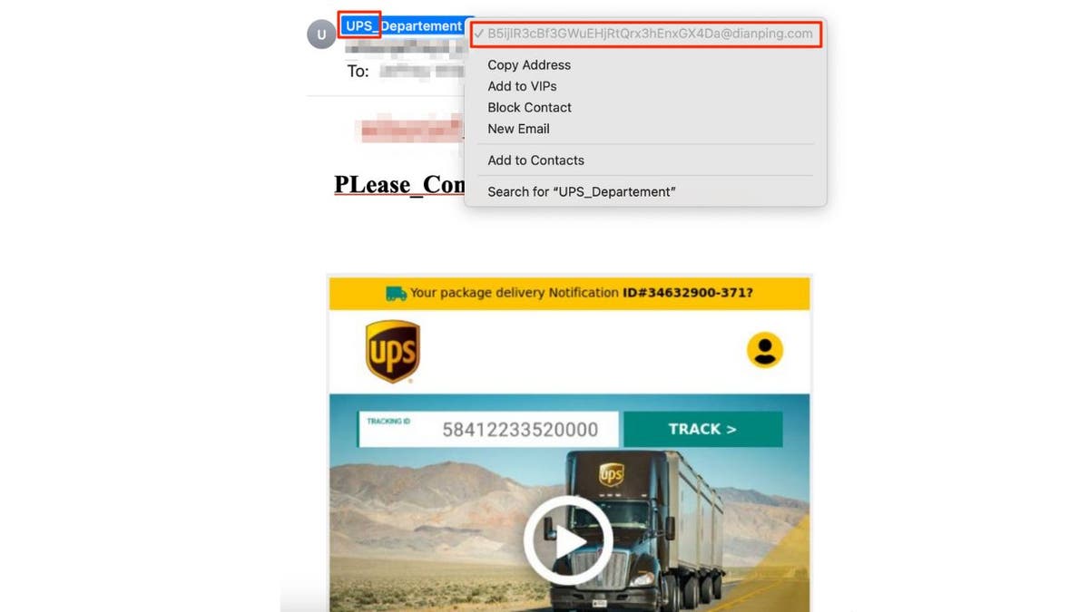 3. Avoid opening attachments or clicking on links from emails unless you are sure they are from a trusted source. Scammers or hackers can easily change the name of the sender to make it look like it came from a legitimate organization such as UPS or an individual. But if you click the email header, you will see the actual email address of the sender, which in our example is not from UPS.