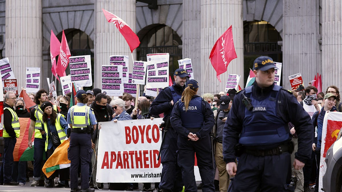 They held banners that read, “Boycott Apartheid Israel” and “Dublin Stands Against Racism,” according to photos from the scene.