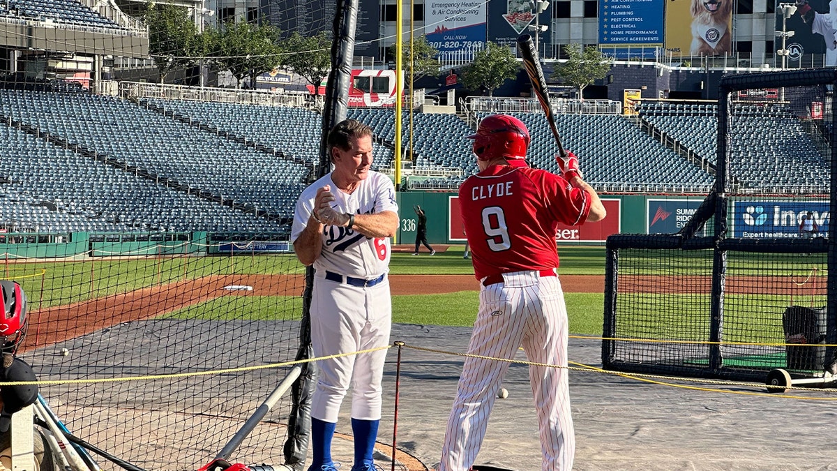 Steve Garvey, former LA Dodgers first baseman and California Senate candidate, gave batting tips to GOP members of congress ahead of the annual congressional baseball game Wednesday. (Fox News Digital)