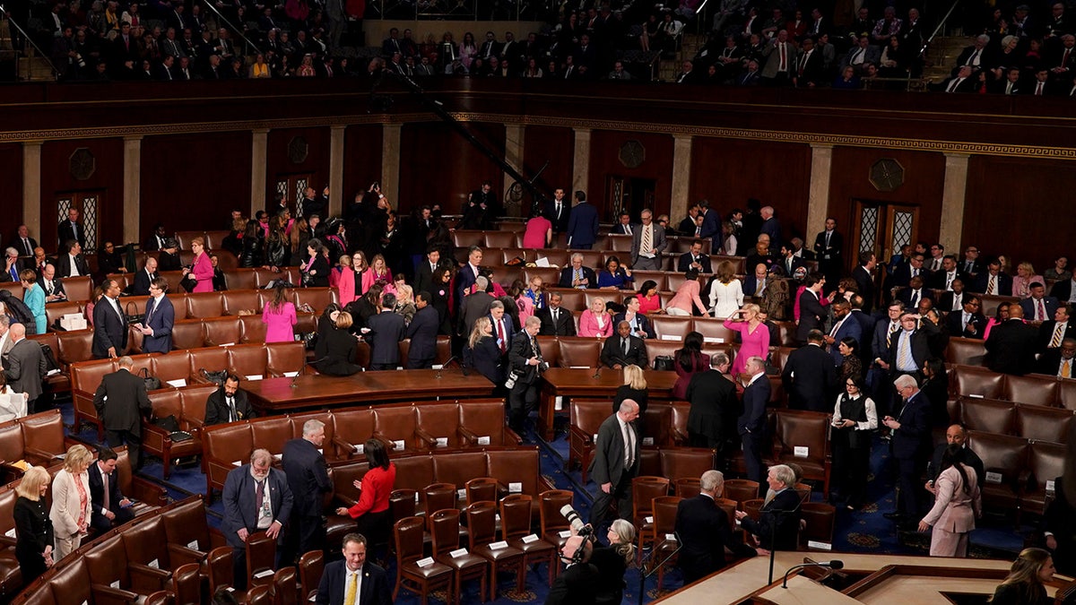 Lawmakers arrive for a joint session of Congress in the House Chamber of the Capitol in Washington, D.C., March 4, 2025. Photographer: Al Drago/Bloomberg via Getty Images