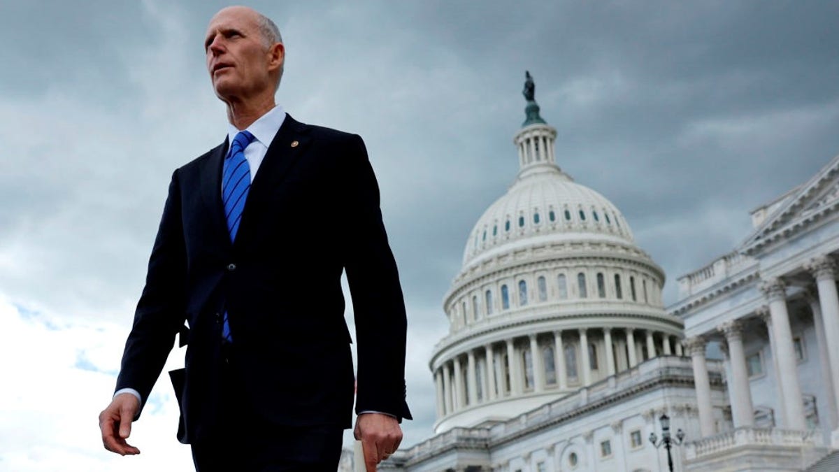 Sen. Rick Scott (R-FL) walks out of the U.S. Capitol to speak at a news conference on May 3, 2023 in Washington, D.C. (Chip Somodevilla/Getty Images)