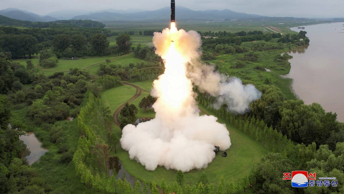 America’s Golden Dome would need to be able to intercept ICBMs, like the one above in a test fire in North Korea. (KCNA via Reuters. )