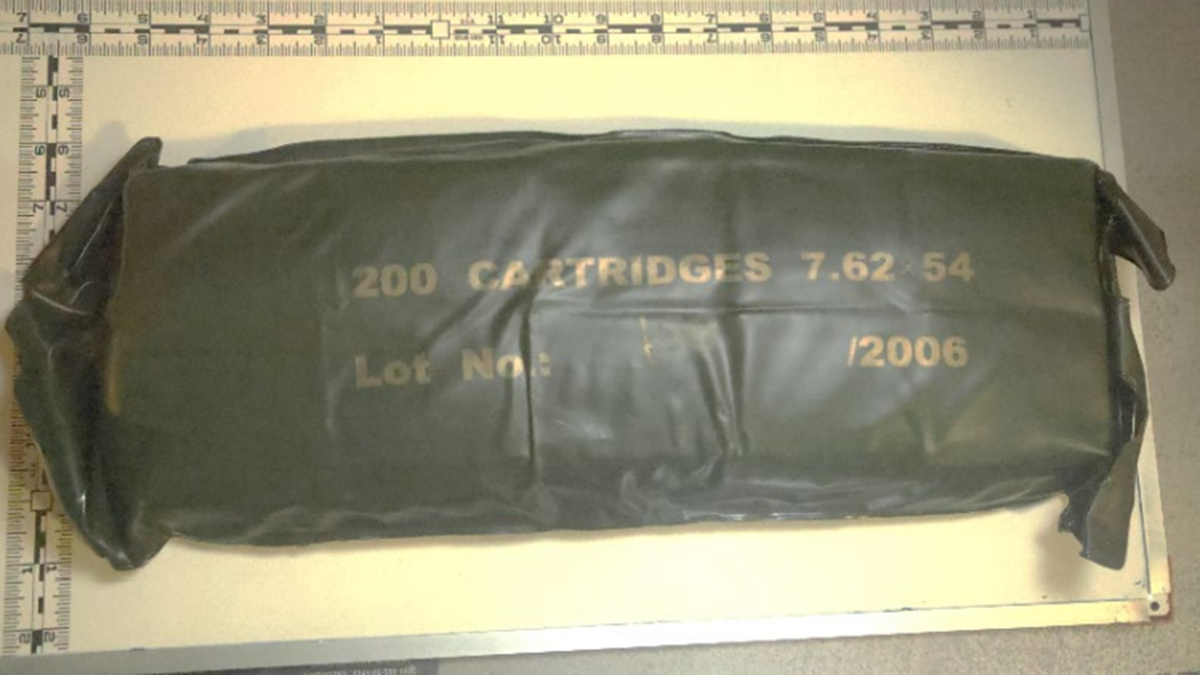 One of the packages of ammo taken from the MARWAN 1 ship in the Gulf of Oman in December 2022. (U.S. Attorney for the District of Columbia)