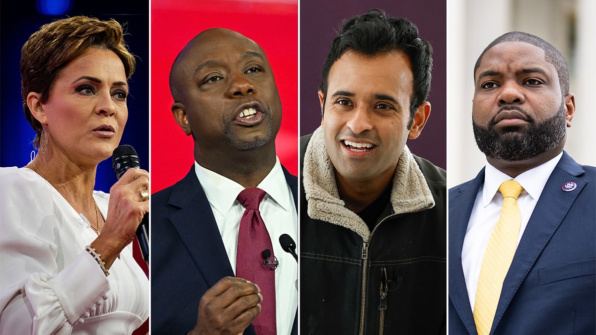 From left to right: Republican Arizona Senate candidate Kari Lake, Republican South Carolina Sen. Tim Scott, former Republican presidential candidate Vivek Ramaswamy and Republican Florida Rep. Byron Donalds. (Getty Images)