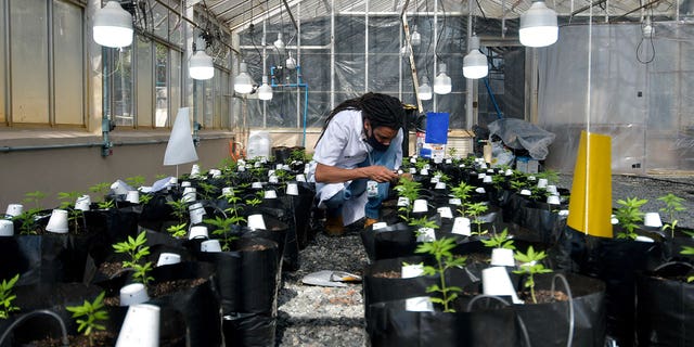 Agronomist Engineer Sergio Rocha, 36, works inside a cannabis greenhouse in Brazil, on Aug. 18, 2021. (REUTERS/Washington Alves/File Photo)