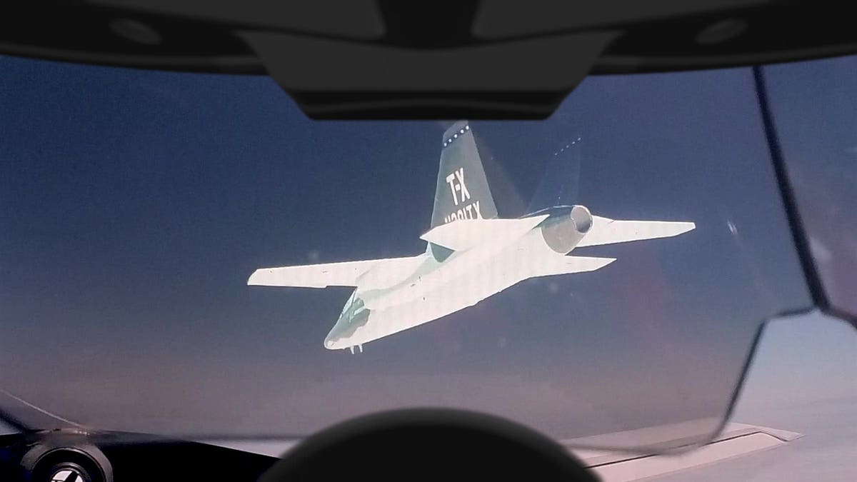 A friendly fighter jet is seen through Red 6’s augmented reality-enabled helmet. (Red 6)