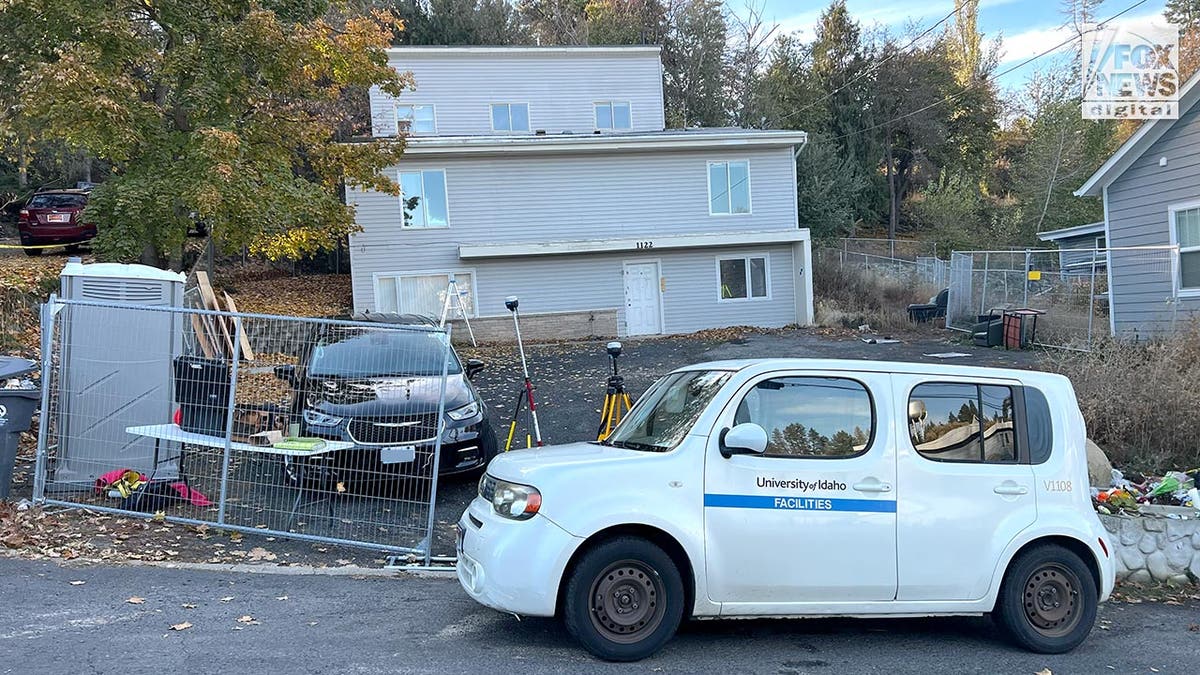 Investigators set up outside the home where four University of Idaho students were slain in November 2022 in Moscow, Idaho, Oct. 31, 2023. (Derek Shook for Fox News Digital)