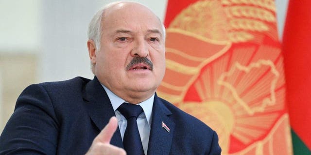 Belarus’ President Alexander Lukashenko meets with foreign media at the Independence Palace in the capital Minsk on Feb. 16, 2023. (Natalia Kolesnikova/AFP via Getty Images)