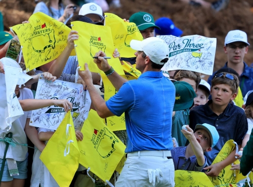 Rory McIlroy signs autographs after competing in the traditional par 3 contest that is held the day before the start of the tournament.